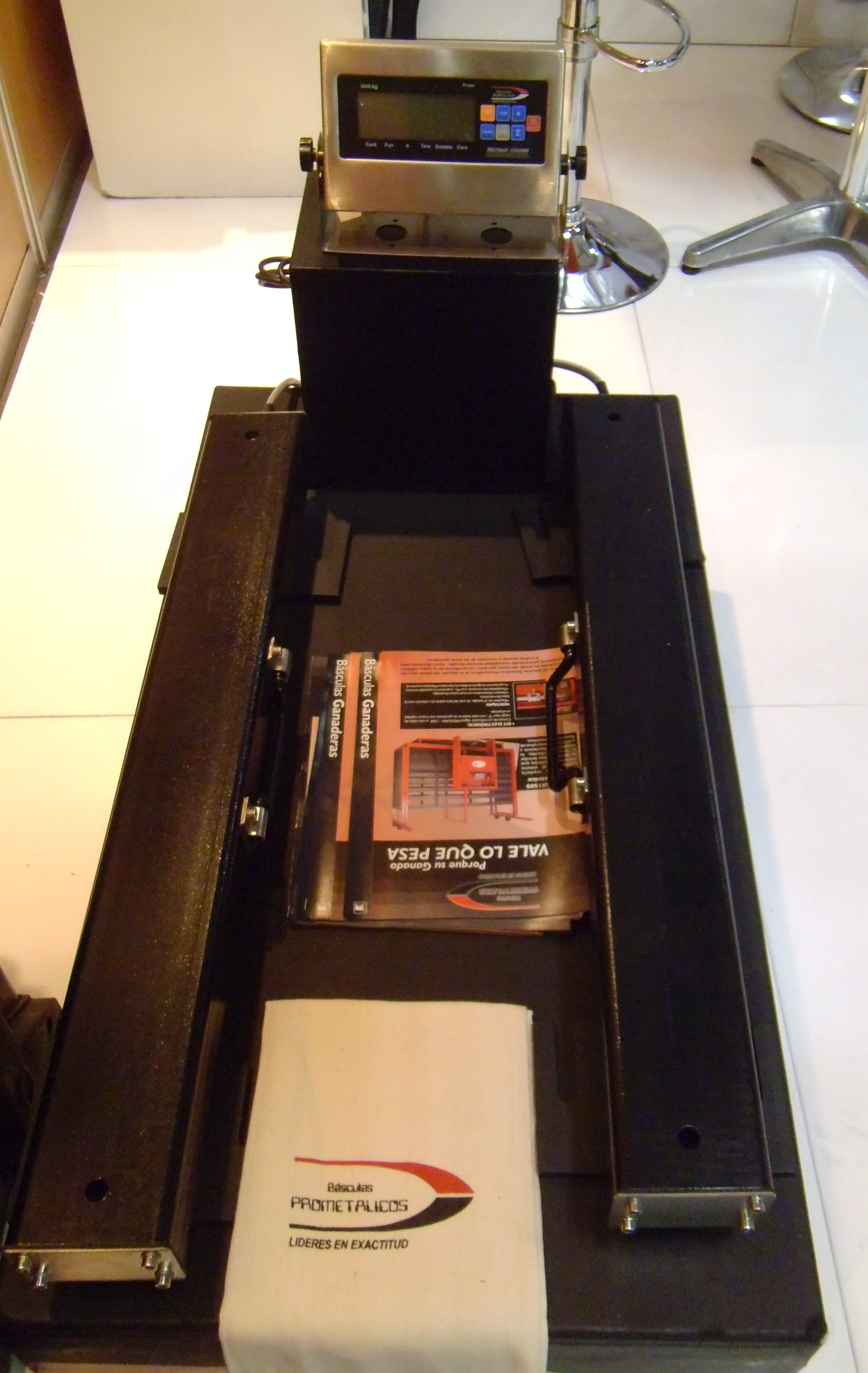 La báscula ganadera electromecánica, lanzada por Prometálicos S.A. en Agosto de 2012, que ha tenido muy alta acogida, ha representado para los ganaderos y para la industria pecuaria, una solución importante en materia de agilidad y precisión en sus labores de pesaje y registro.